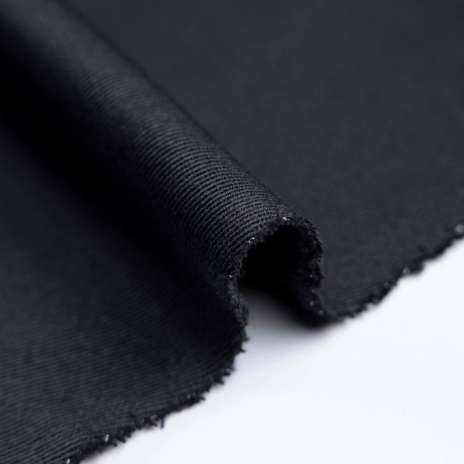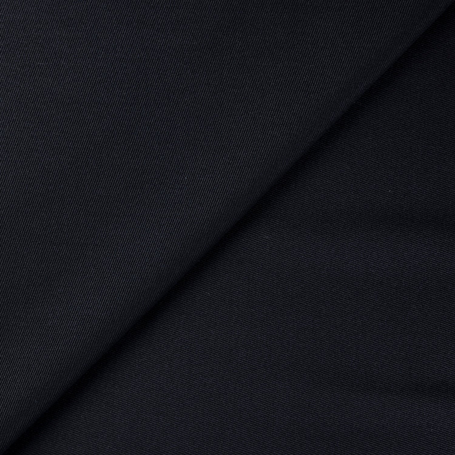 Ce whipcord de laine vierge et élasthanne noir est un tissu au tissage serré et diagonal, immédiatement reconnaissable à sa surface nette et structurée. Sa construction spécifique lui confère une excellente tenue tout en conservant une légère souplesse grâce à l’élasthanne, ce qui permet de réaliser des vêtements précis, confortables et durables. Le toucher est sec et élégant, avec un rendu visuel profond qui capte la lumière sans brillance excessive, idéal pour des pièces intemporelles et bien construites.